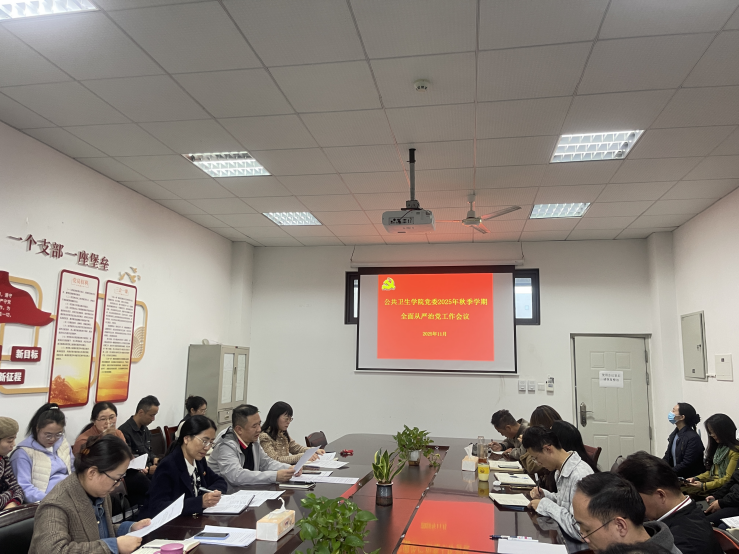 11月10日上午,公共卫生学院召开2025年秋季学期全面从严治党工作会议。学习贯彻党的二十届四中全会精神,传达学校2025年秋季学期全面从严治党工作会议精神,学习持续抓好中央八项规定精神贯彻落实、推进作风建设常态化长效化,研究部署学院全面从严治党工作。学院班子成员、党委委员、纪委委员、全体教师参加会议。